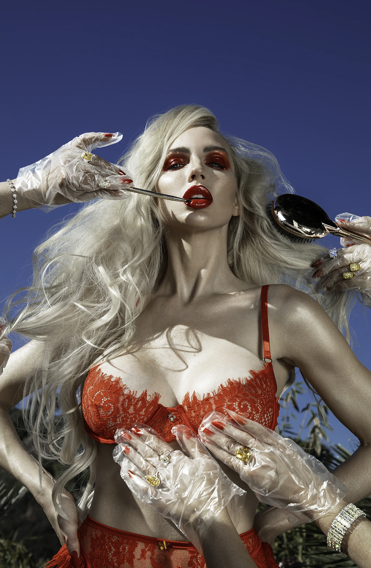 Christine Quinn. Fotofakt. Christine Quinn. Playboy MX (Looks: roter Guipure BH, blonde Haare)